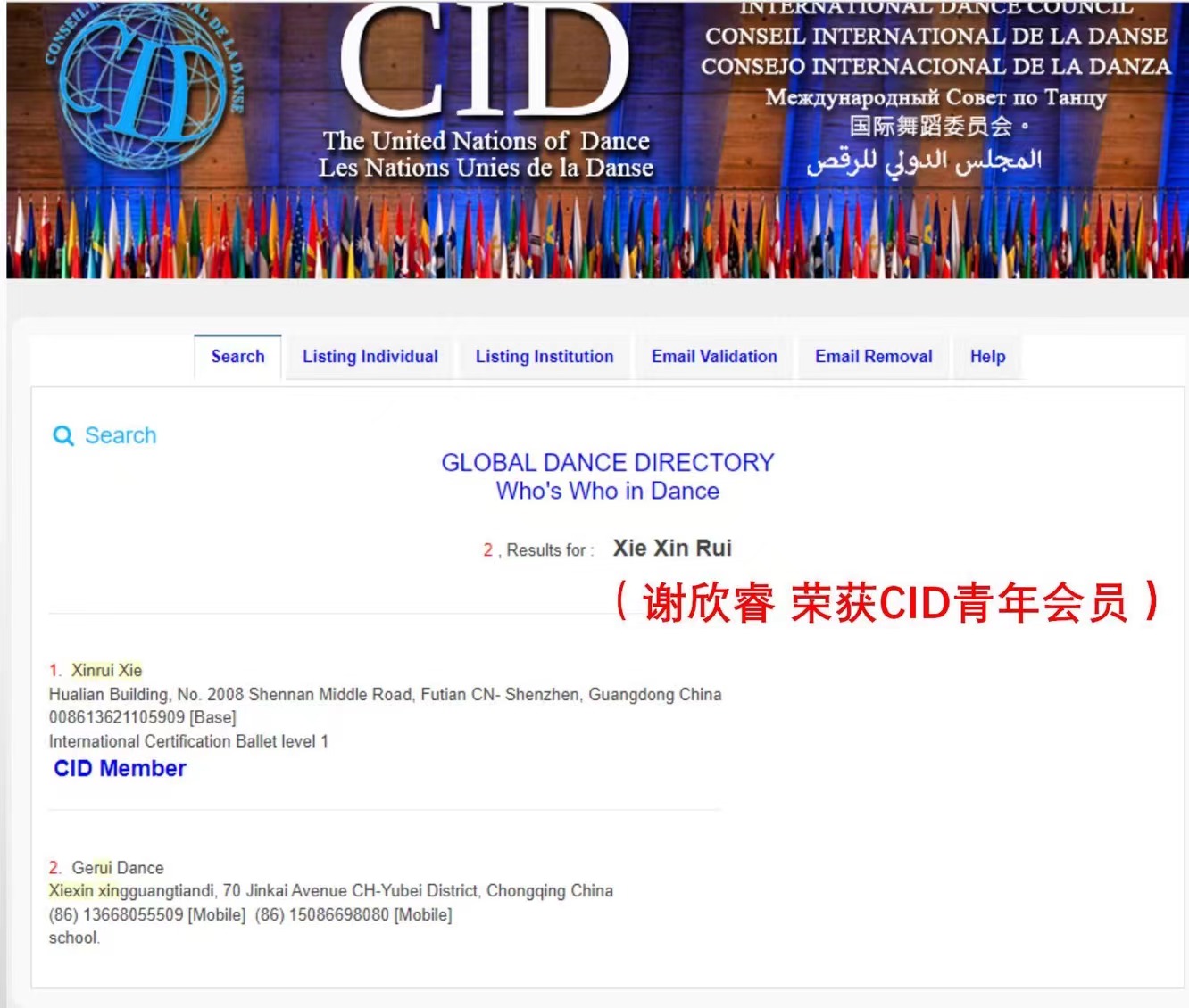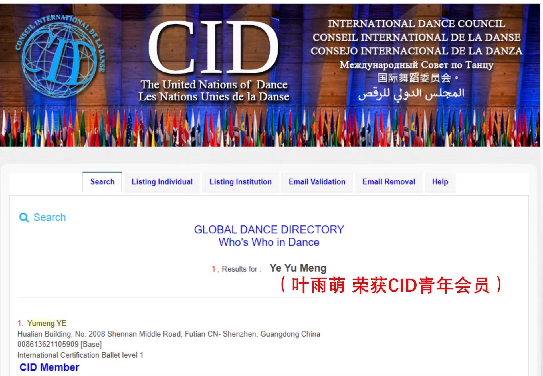 叶雨萌同学、谢欣睿同学、马子茵同学、勇恒乐同学、吴宇桐同学于2021年3月一2022年3月,在十二月芭蕾舞培训学校学习期间,表现良好,完成了150个小时的芭蕾舞培优课程的学习,并在第八届维也纳国际芭蕾舞线上比赛中,获得佳绩。经过CID考官考核,获得芭蕾level 1 证书。